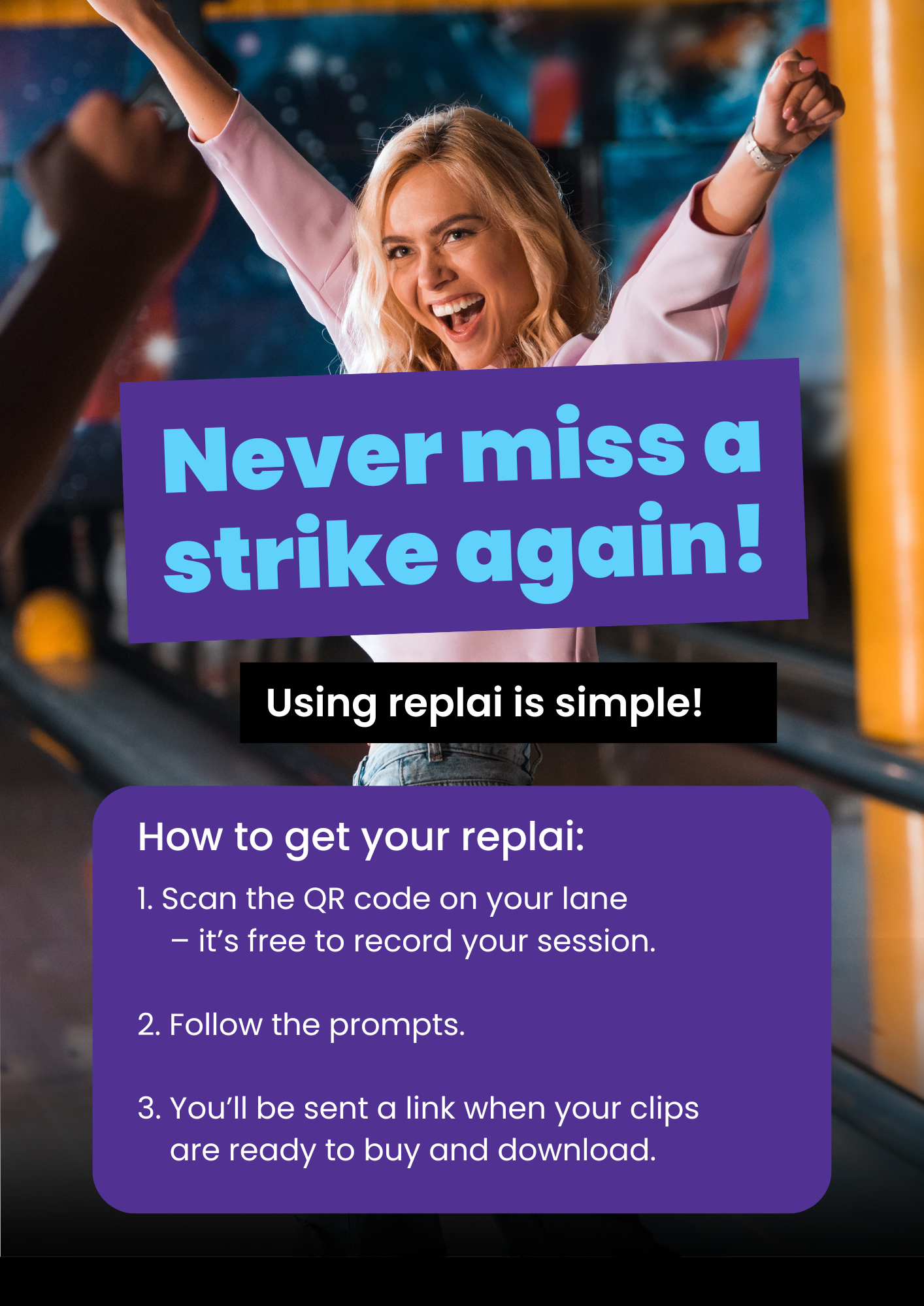 replai provides 4K AI-powered highlight clips and tournament livestreaming for tenpin bowling centres.